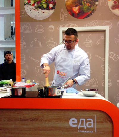 Кулинарное фуд-шоу никого не оставило равнодушным. Любимчики публики — Владимир Павлов и Рустам Тангиров — дали возможность всем посетителям стенда совместить приятное с полезным и ощутить на себе плодотворность дружественно-рабочей атмосферы.